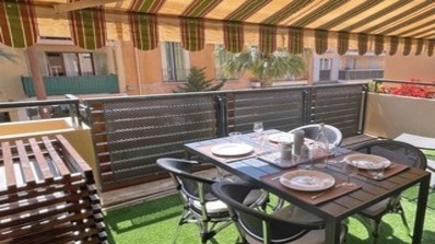 - Balcon fermé avec table et chaises de repas