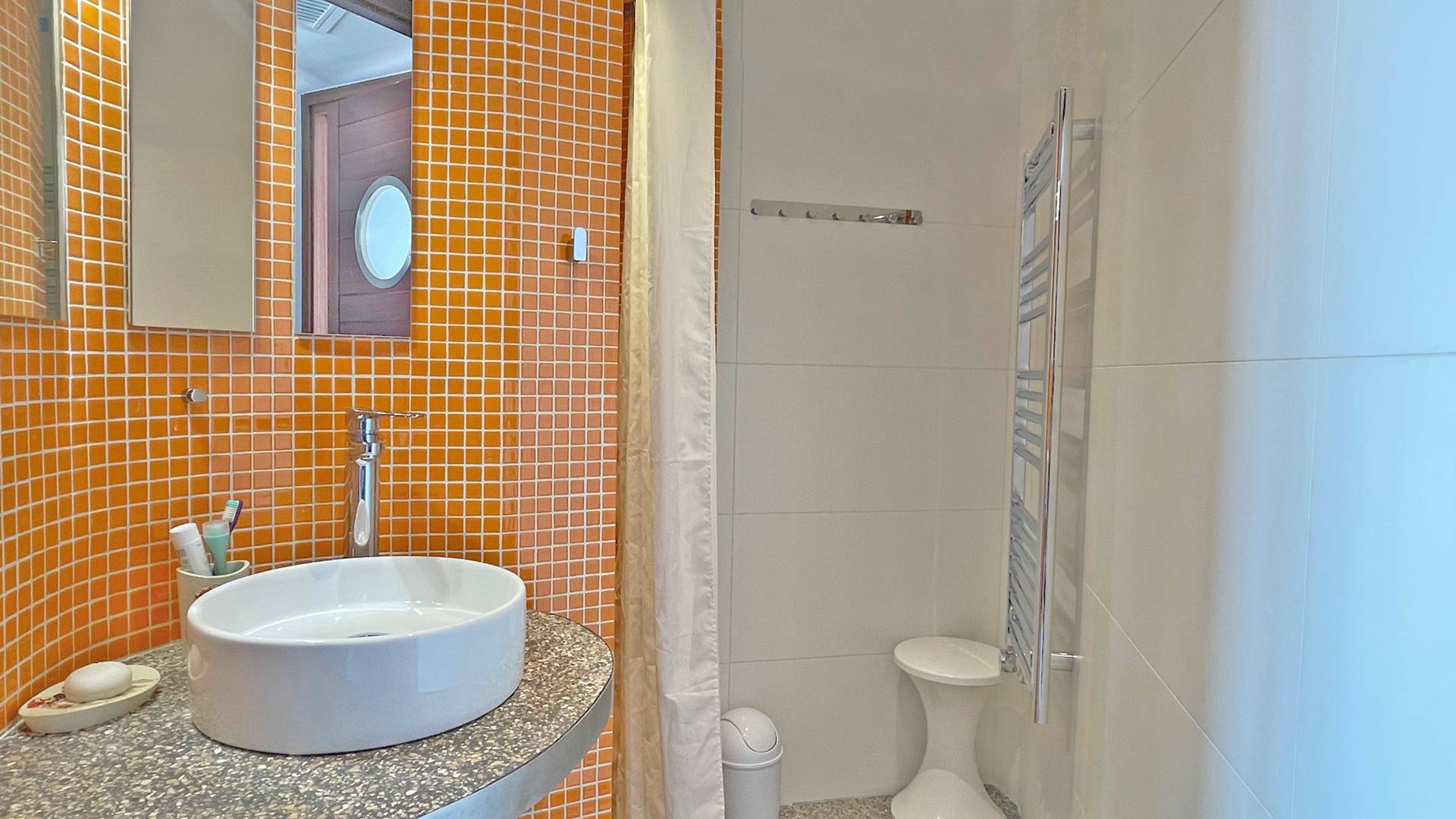 - Salle d'eau avec douche italienne (ronde), meuble vasque