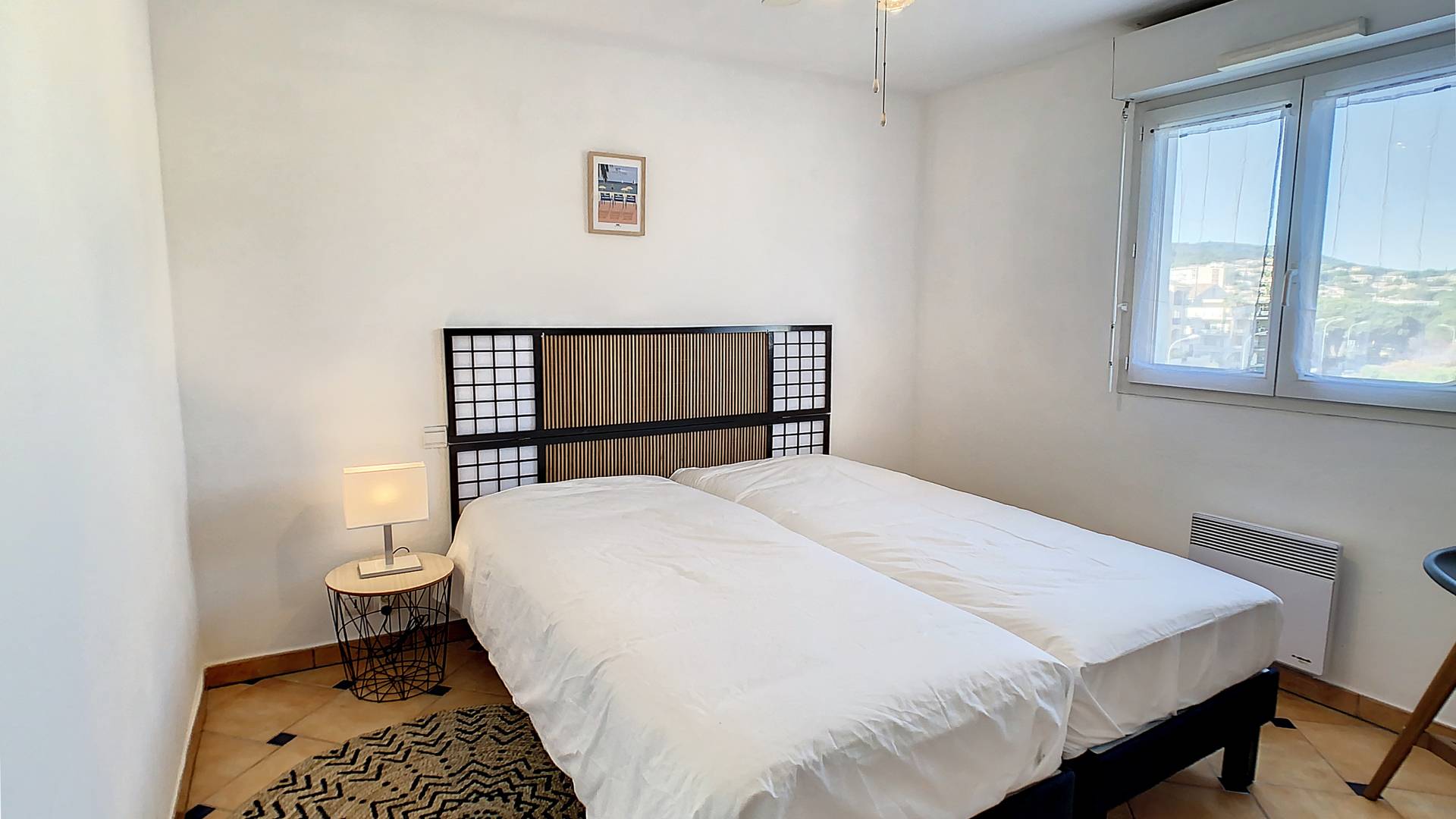 - Chambre 2 : 2 lits 80x200cm, TV murale, placards, ventilation électrique au plafond