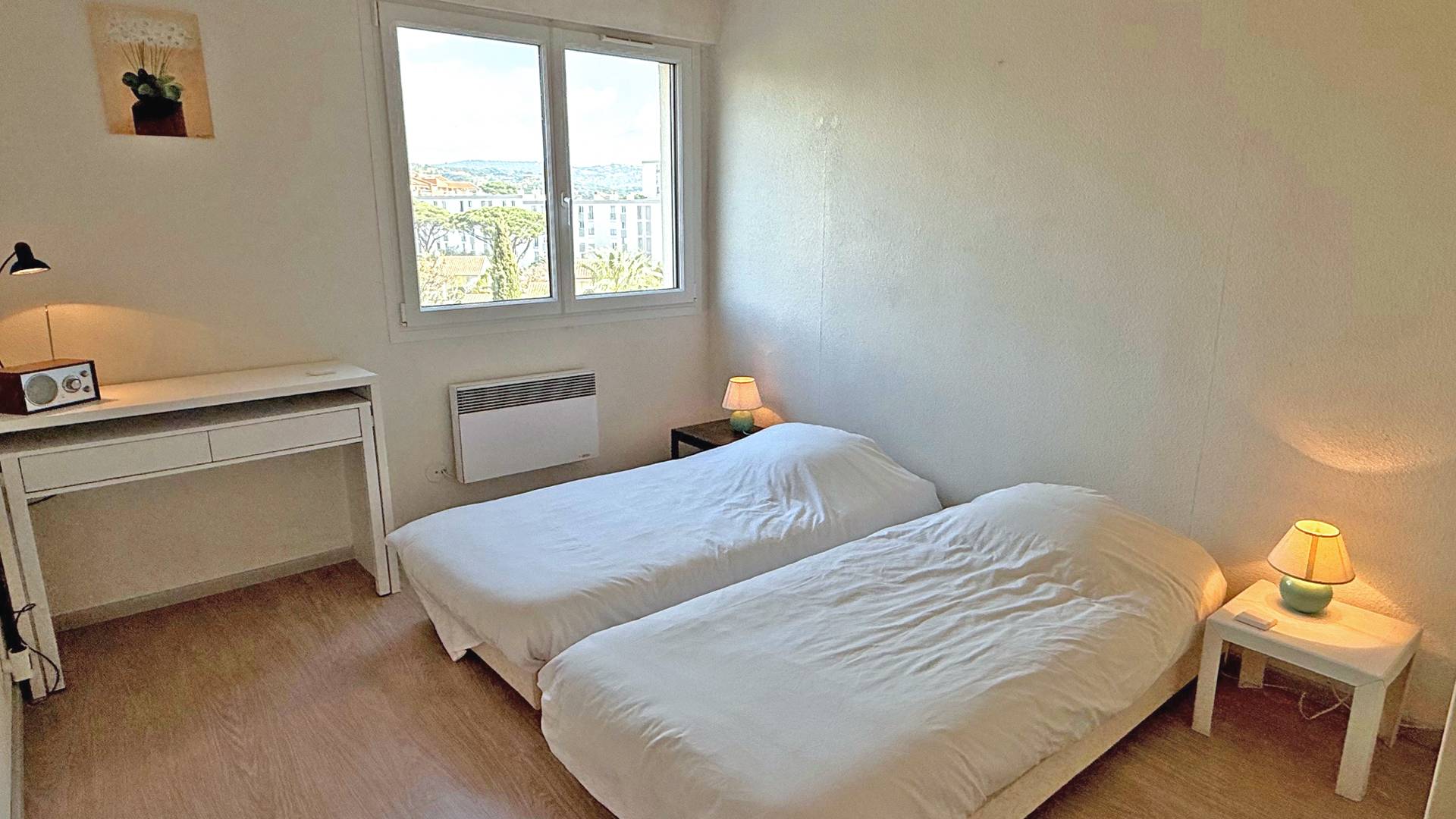 Spacieux appartement composé de 2 chambres au sein d'une résidence avec piscines et tennis, à proximité des commerces et à environ 10-15 minutes à pied du centre-ville et de la plage. Idéal pour un séjour en famille ou entre amis.
