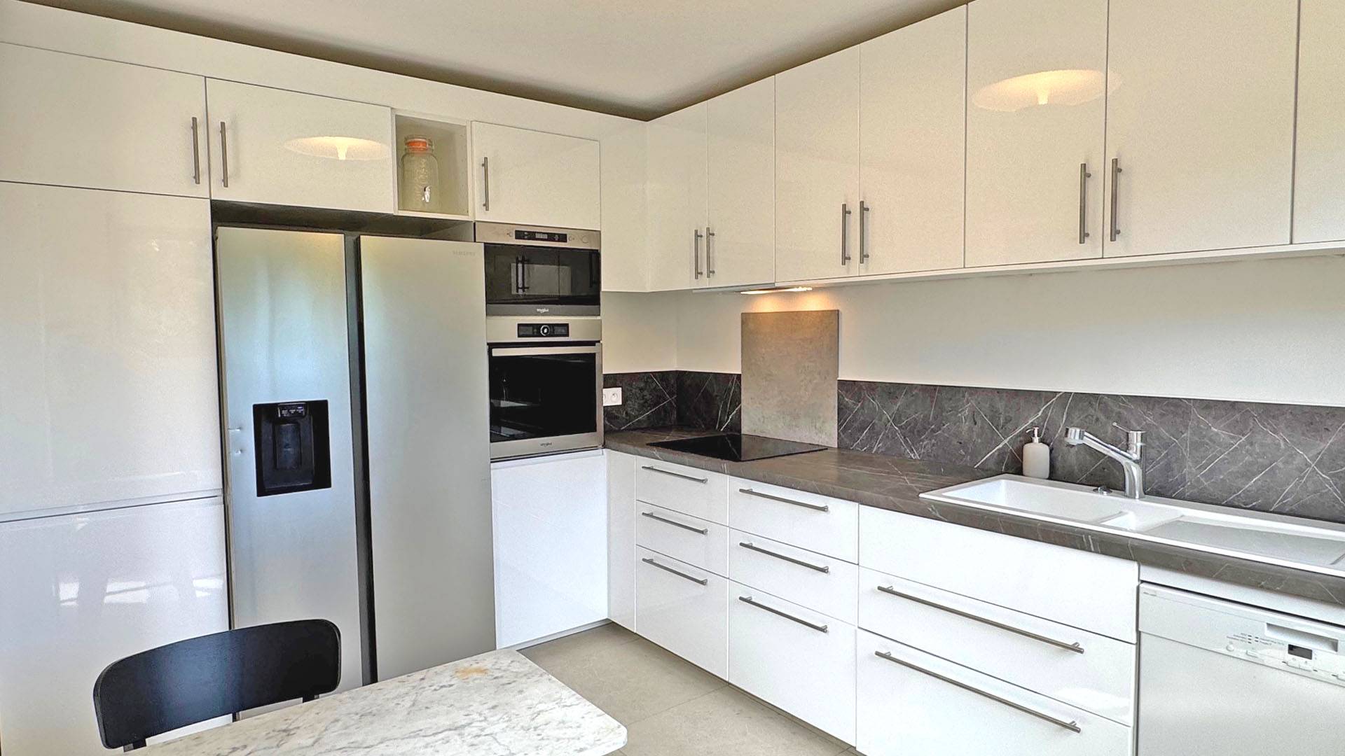 - Cuisine avec réfrigérateur américain, lave-vaisselle, four, micro-ondes, machine Nespresso, plaque de cuisson induction, vaisselles diverses