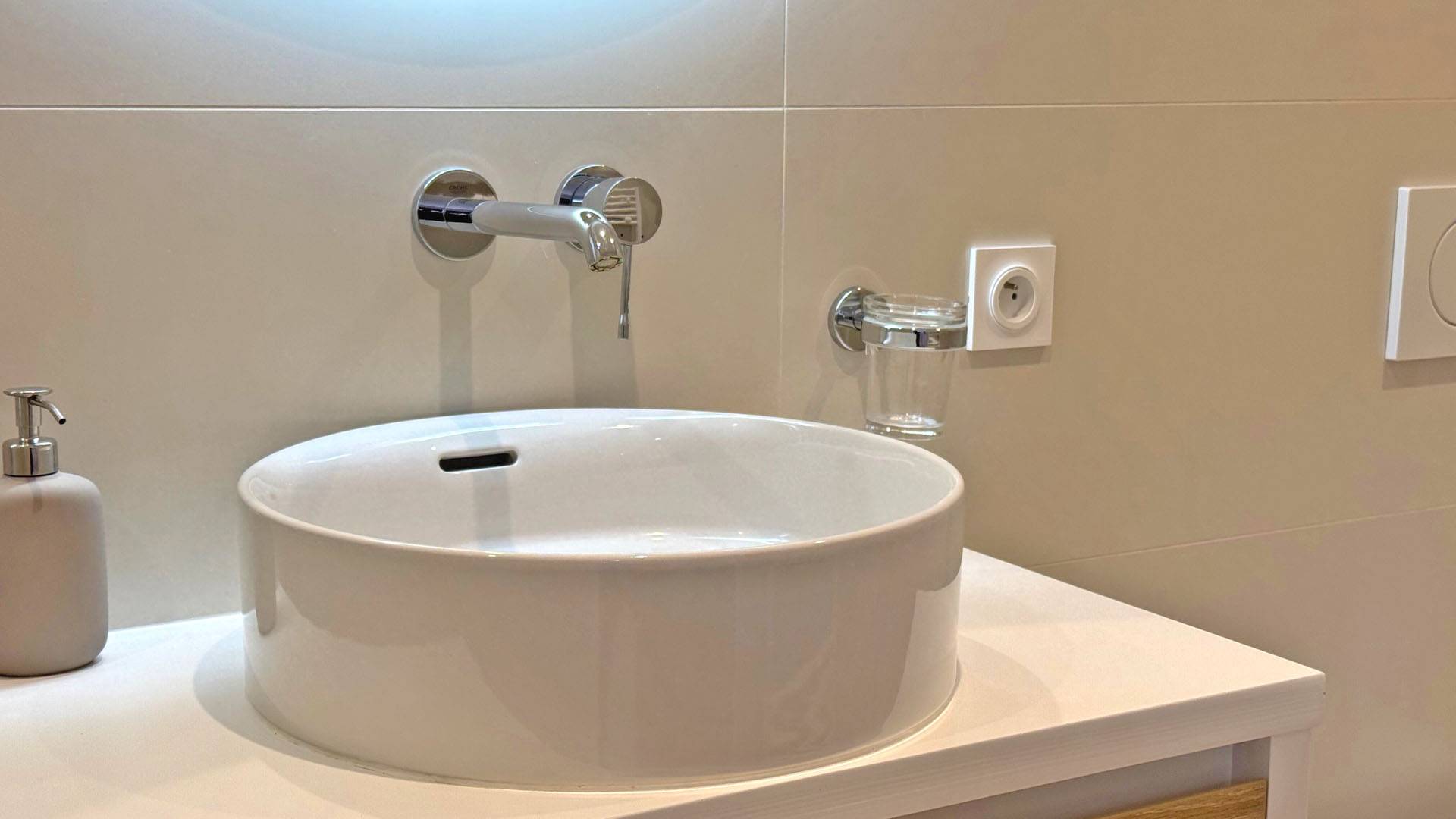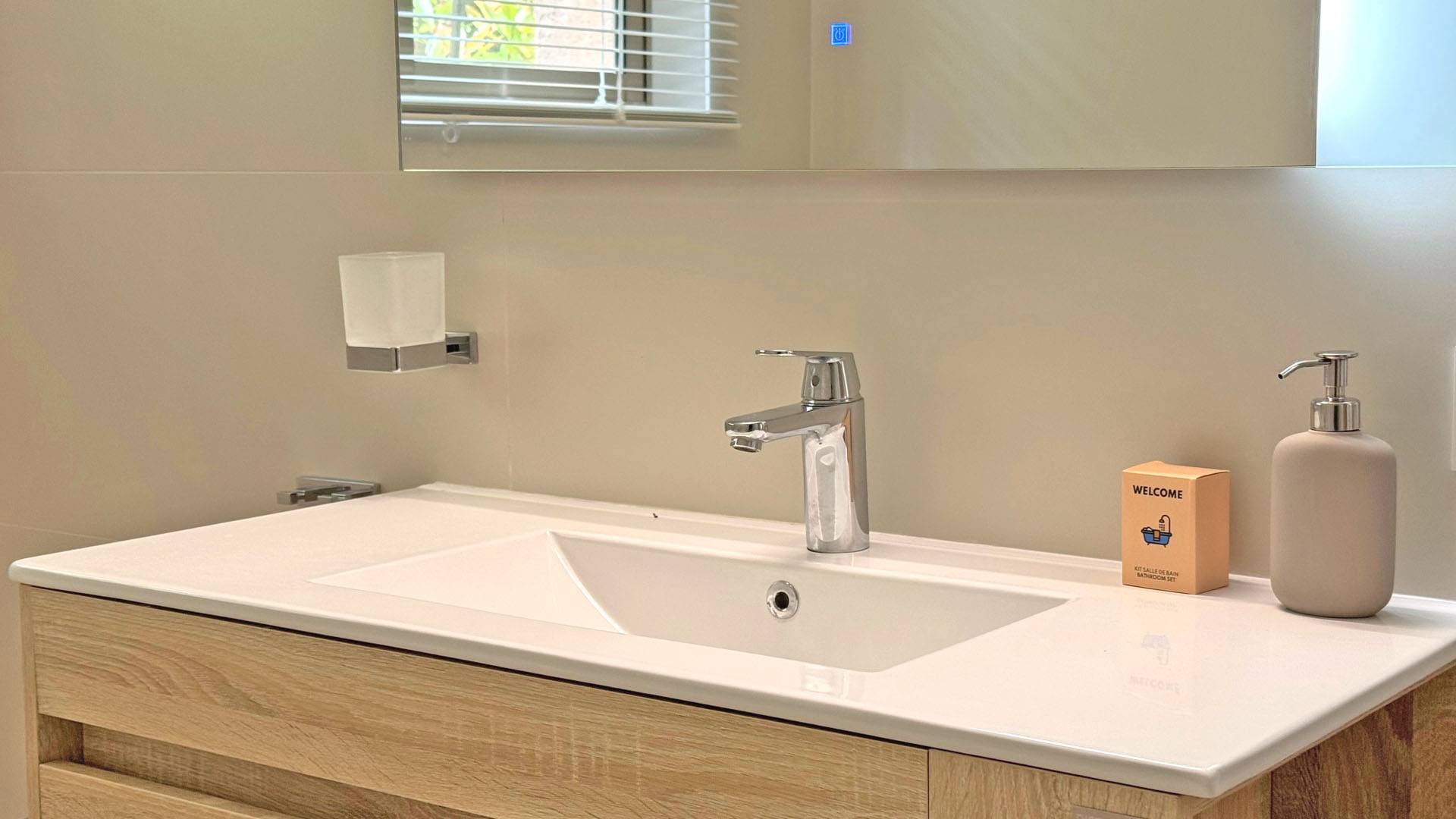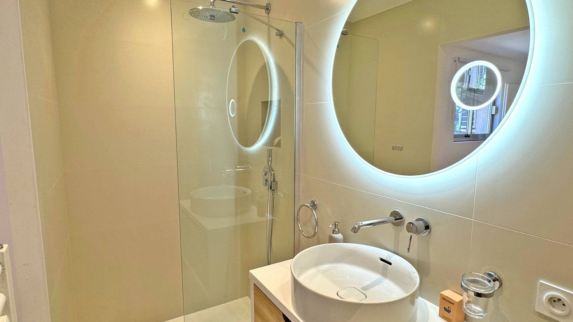 - Salle d'eau attenante avec douche, meuble vasque et WC