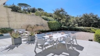 - Terrasse exposée ouest avec mobilier d'extérieur et store
