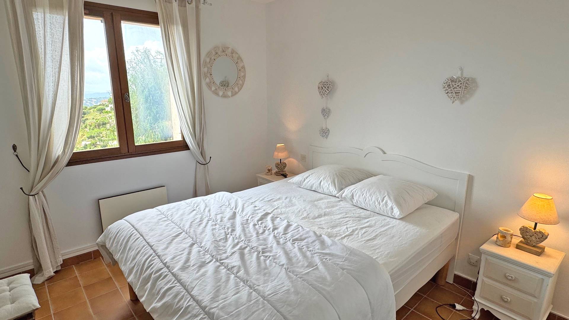 - Chambre 1 - 1 lit double 160cm avec rangement et TV - Vue mer et accès piscine