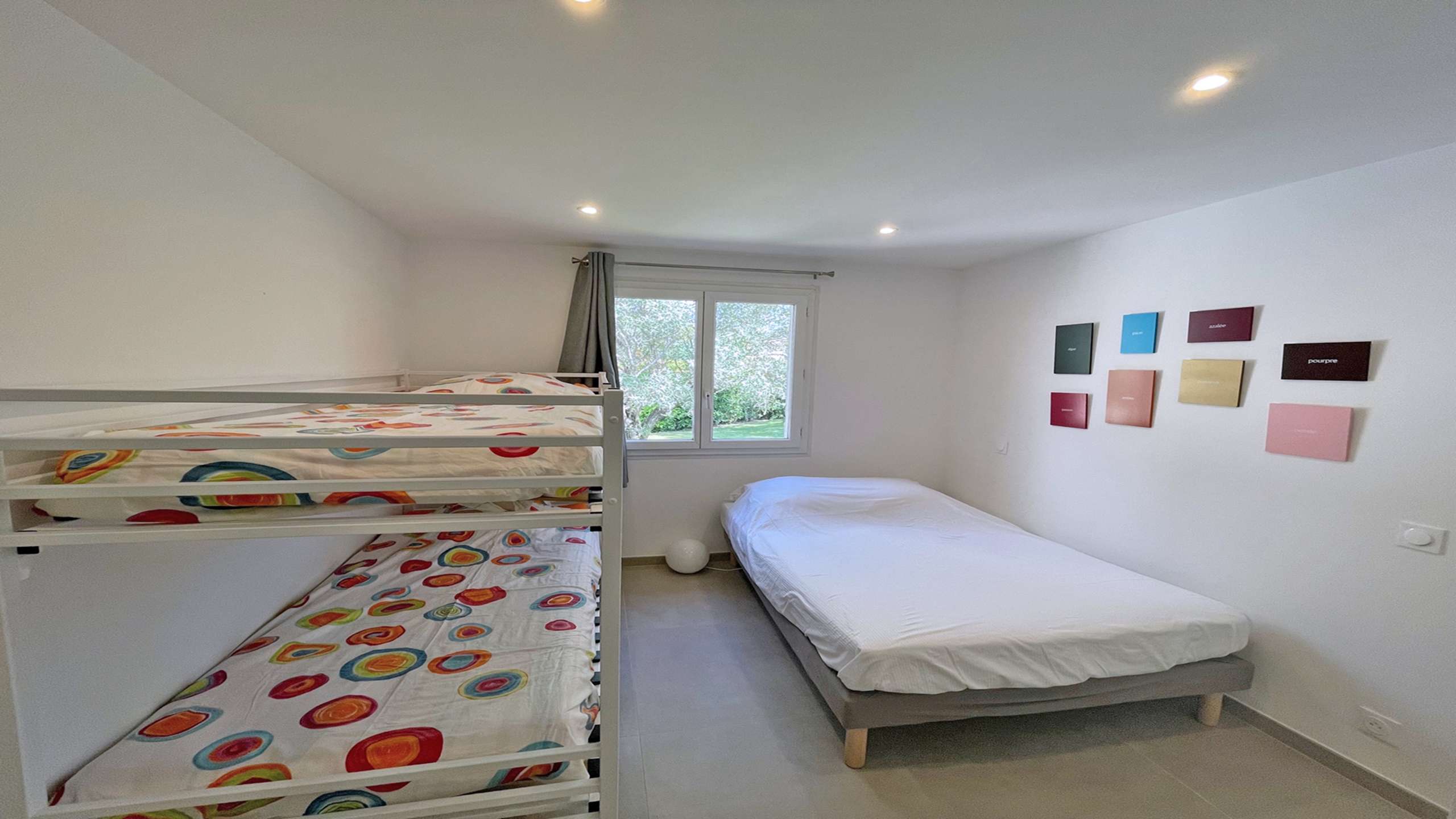 - Chambre 4 climatisée : Lit double 140x200 et lits superposés 2x80cm avec placards
