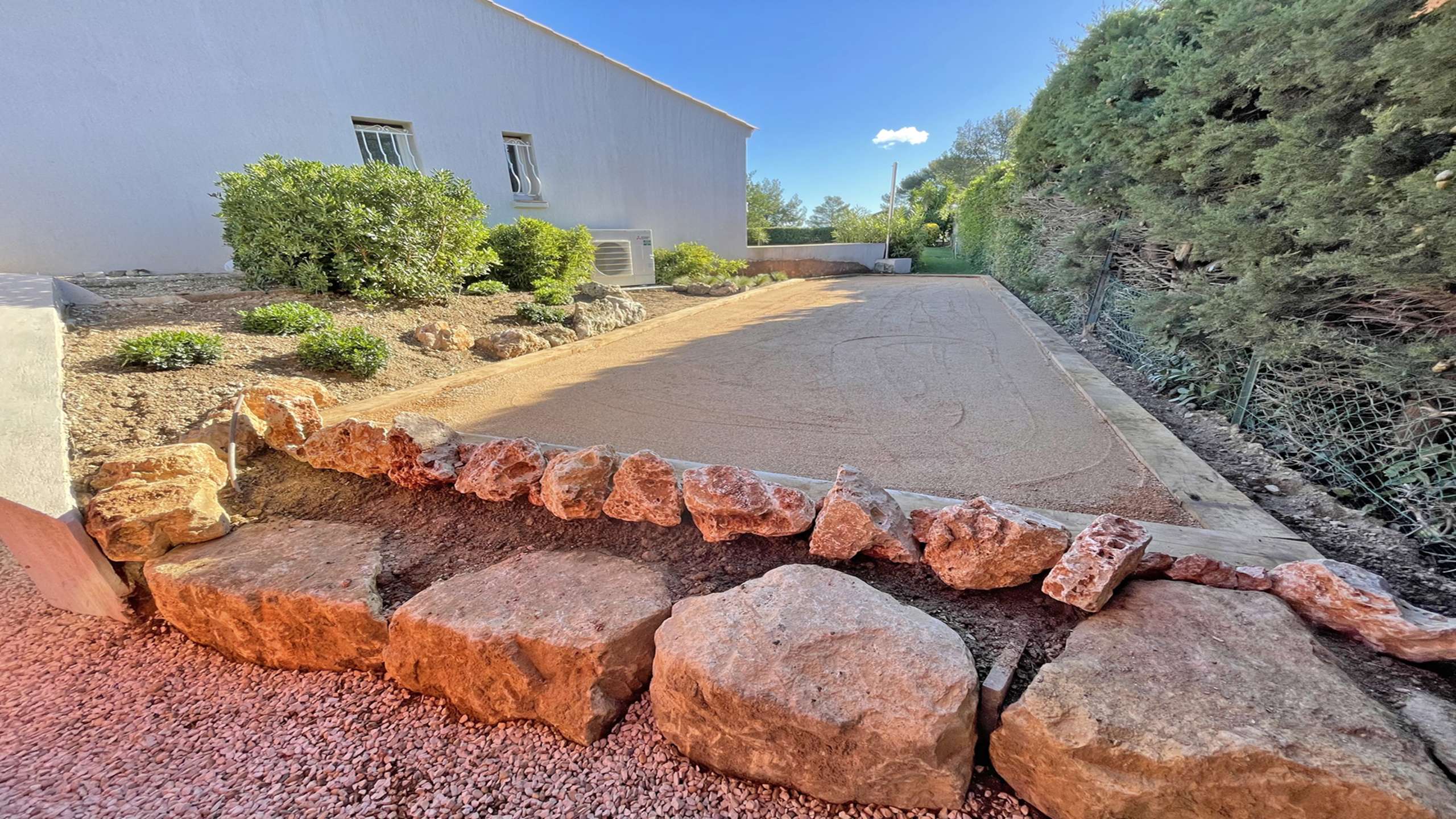 - Allée de stationnement pour 3 véhicules, sécurisée par portail électrique.