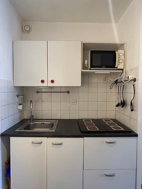 - Une cuisine/séjour : cuisine équipée d'un grand réfrigérateur/congélateur (3tiroirs), 3 plaques à induction, four micro-onde, table avec 4 chaises, séjour avec un canapé clic-clac